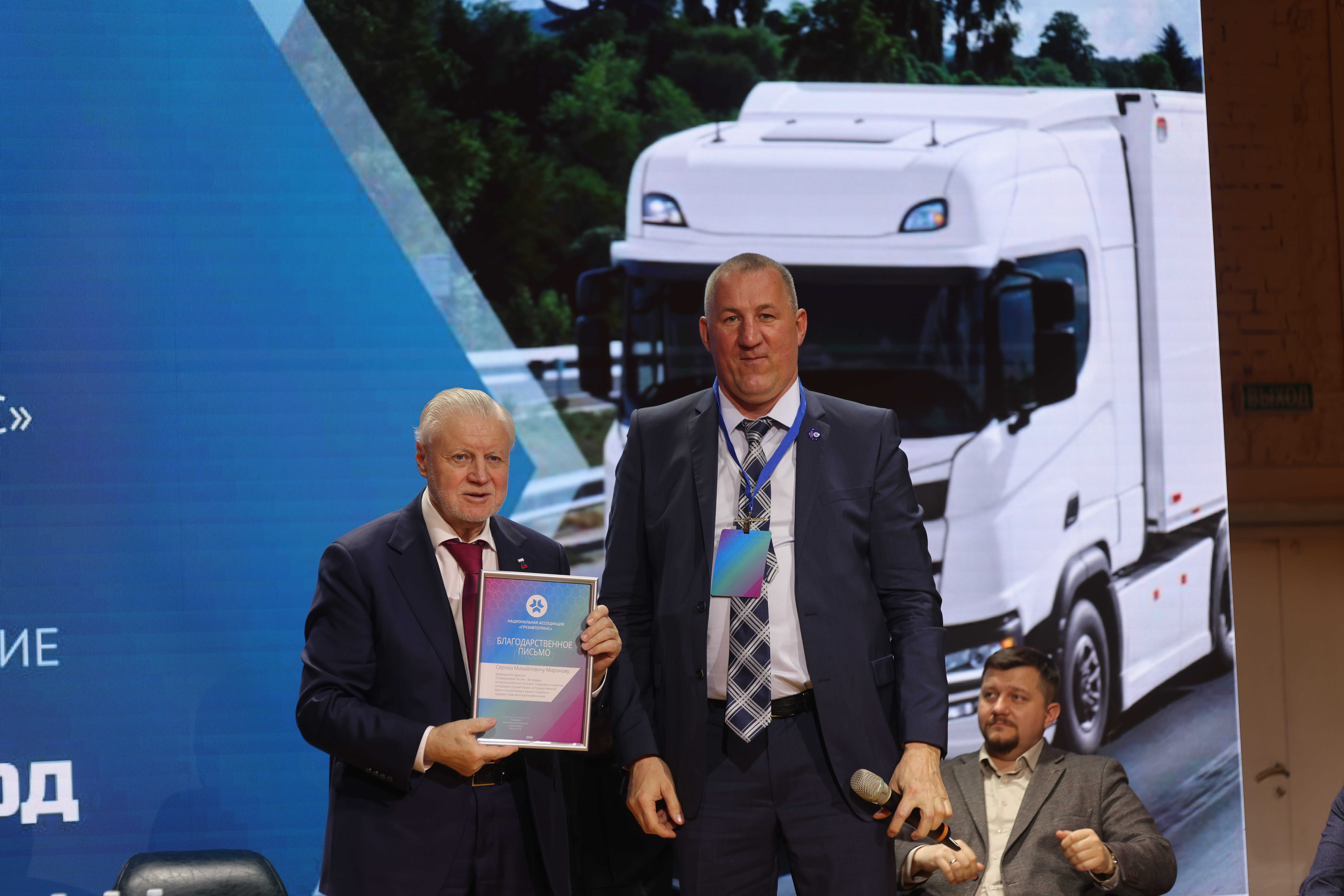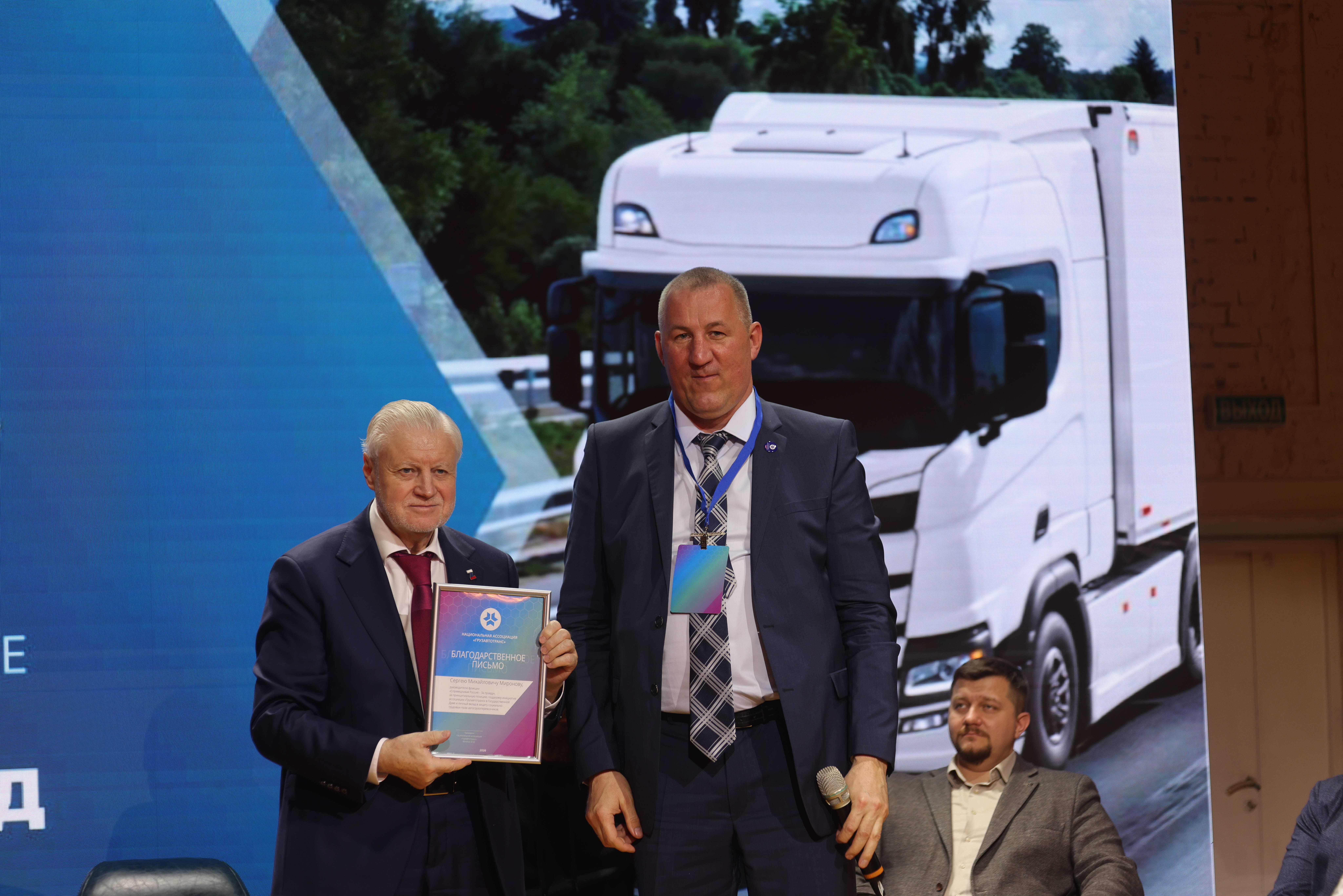Главная новость:на форуме прозвучало предложение, которое выводит нашу борьбу на новый уровень. Руководитель фракции «Справедливая Россия — За правду», Миронов Сергей Михайлович, официально пригласил президента Ассоциации "Грузавтотранс " — Владимира Васильевича Матягина — баллотироваться в Государственную Думу. Пора защищать интересы перевозчиков на самом высоком государственном уровне!
